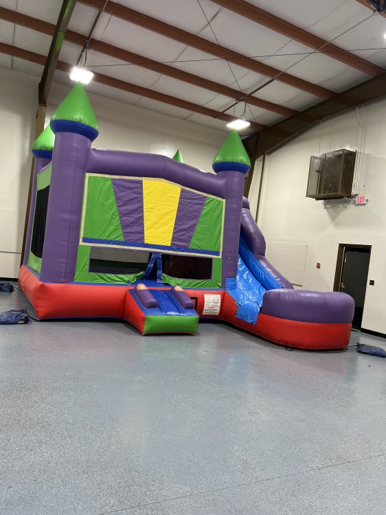 Purple Combo is a vibrant all-in-one inflatable that pairs a roomy bounce area with a slick slide in bold purple colors. Built for backyard parties and school events, it keeps kids moving with mesh sides for airflow, a soft landing!