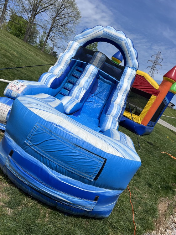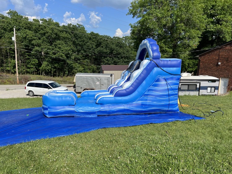 A compact 12-foot blue-marble inflatable slide that delivers ocean-wave vibes and kid-friendly thrills. Backyard-ready, easy to set up, and perfect for younger riders and smaller spaces.